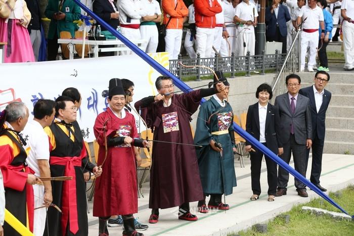 | ▲ 지난해 실시된 '활쏘기 대회'에 참석한 김영종 구청장(가운데)이 활 시위를 당기고 있다. | ||