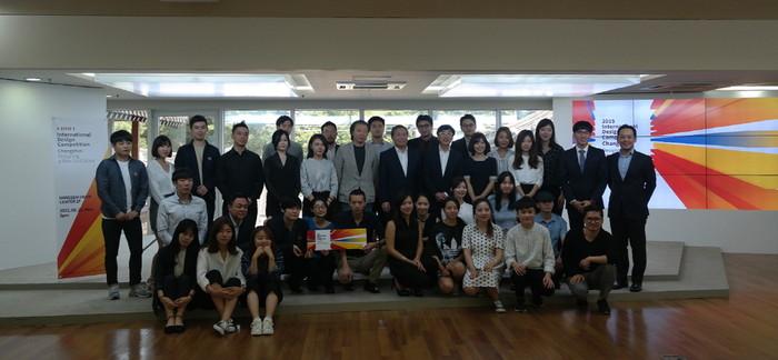 | ▲ 2015 신문명디자인공모전 시상식 심사위원 및 수상자 단체 사진 | ||