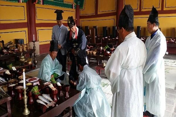이번 추기 석전대제는 문묘배례, 윤리선언문 낭독 등을 통해 인의예지에 근거한 문화인임을 자부하고 윤리실천과 미풍양속 계승에 앞장설 것을 다짐하는 1부 일반의식과 공자를 비롯한 중국 5성과 우리나라 22현의 위패가 모셔진 대성전 제단위에 향을 피우고 폐백을 올리는 2부 석전봉행으로 진행됐다.