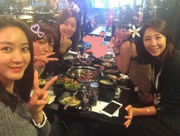한그루는 공개된 사진 속에서 한채아,신소율,전미라,유선 등과 회식을 하고있다.