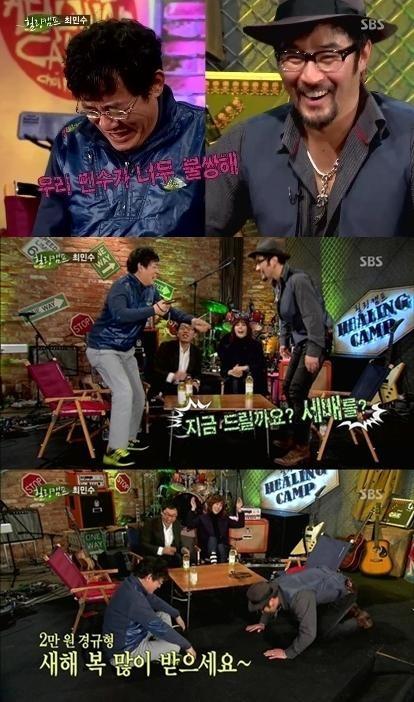 이후 최민수는 이경규를 향해 새배를 올리며 "새해 복 많이 받으세요"라고 감사의 인사를 전해 시청자들에게 큰 웃음을 안겼다.