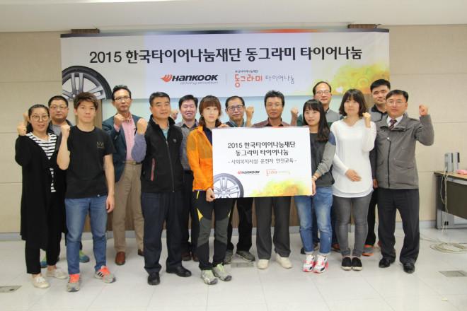 한국타이어는 2010년부터 사회복지시설 이용자들의 안전한 이동 환경을 위해 노후된 타이어를 교체해주는 ‘동그라미 타이어 나눔사업’을 실시하고 있다. 2010년부터 2014년까지 전국 2213개 기관, 총 9252개 차량의 노후 타이어 교체를 지원했으며, 2015년에는 총 570개 기관을 최종 선정해 타이어 4개 교환과 휠 얼라이먼트 교정까지 지원하고 있다.