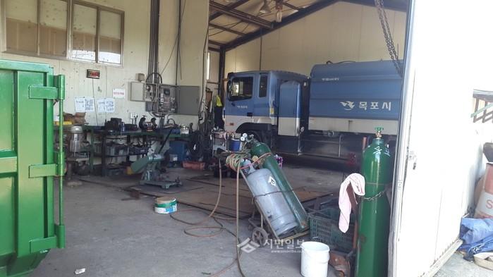 이는 목포시 계약직 김 모씨(45) 등이 최근 “목포시가 대양동 쓰레기매립장 진입로에 있는 창고에서 청소차량에 용접과 페인트칠을 하는 등 각종 정비를 하고 있다”고 주장하면서다.