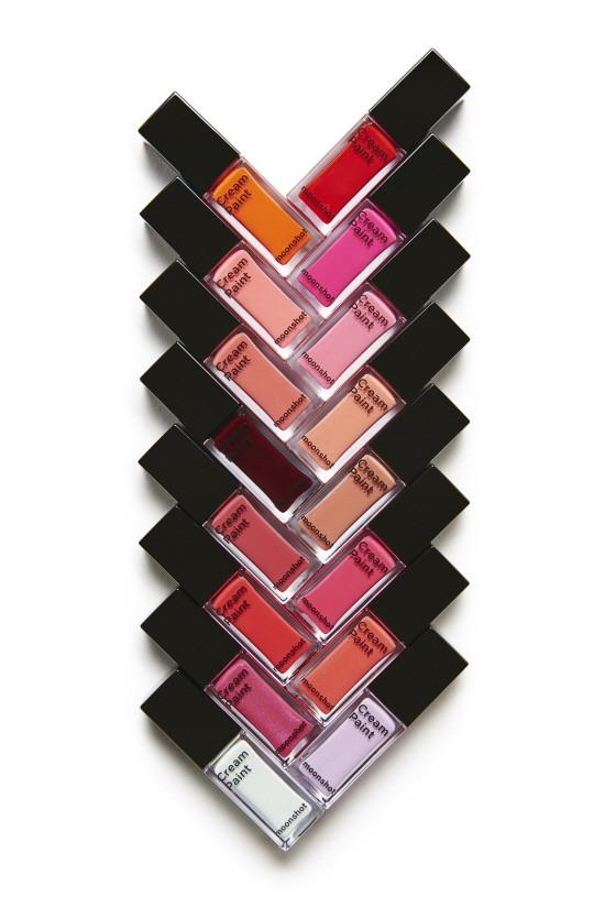 크리미한 질감이지만 피부에 바르는 순간 파우더리하게 변하는 독특한 제형인 문샷의 첫 번째 대표 상품 크림페인트는 선명한 발색과 밀착력이 특징이다.
