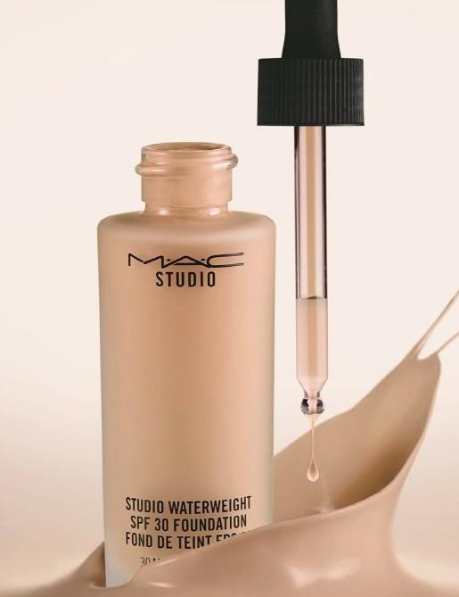 MAC 스튜디오 워터게이트 파운데이션은 가벼운 젤 세럼 포뮬라로 이뤄져 끈적임 없이 깃털처럼 얇고 균일하게 발리며, 여러 번 덧발라도 밀리지 않으며 모이스처-퓨전 콤플렉스로 피부에 빛나는 광을 코팅한다.