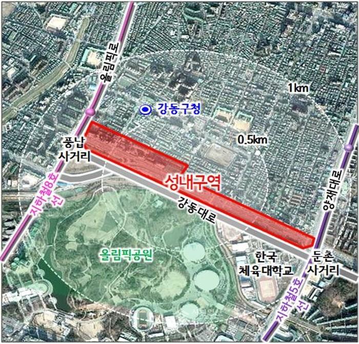 [시민일보=이대우 기자]서울 강동구(구청장 이해식)가 성내동 451번지 일대의(면적 17만8919㎡) ‘성내 지구단위계획구역·지구단위계획’에 대한 재정비를 마치고 5일 도시관리계획 결정(변경)을 고시했다.