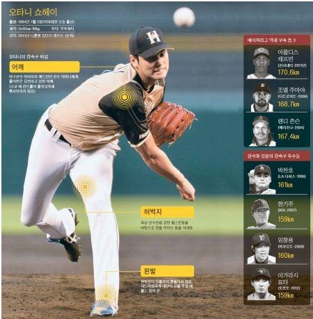 일본 프로야구 니혼햄 파이터스의 21세 오타니 쇼헤이는 역시 알려진대로 빠른 강속구와 다양한 레퍼토리의 구종을 가지고 있는 투수였다.