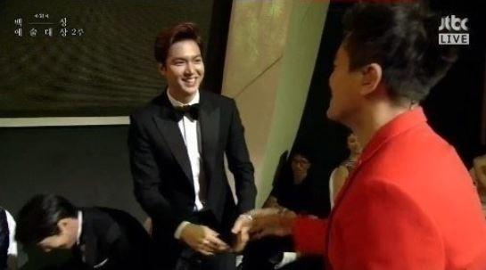 박진영은 지난 5월 26일 경희대학교 평화의전당에서 열린 '제51회 백상예술대상' 2부 시작 축하무대 도중 음악을 멈추고 이민호 곁으로 갔다.