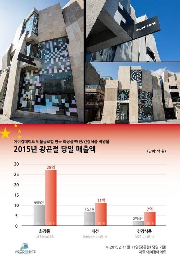 중국 최대 전자상거래 플랫폼 에이컴메이트에 따르면 지난 11일 중국판 블랙 프라이데이 '광곤절' 하루 동안 화장품 판매액으로 28억 원을 기록했다. 이는 지난해 9억 9천만 원보다 약 3배 가까이 늘어난 수치다.