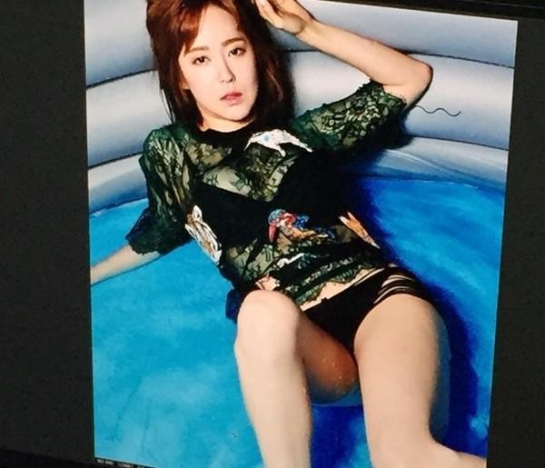 당시 공개된 사진 속 유소영은 시스루 티셔츠를 걸치고 블랙 컬러의 비키니를 입은 채 실내 풀에 누워 야릇한 표정으로 카메라를 물끄러미 응시하고 있다.