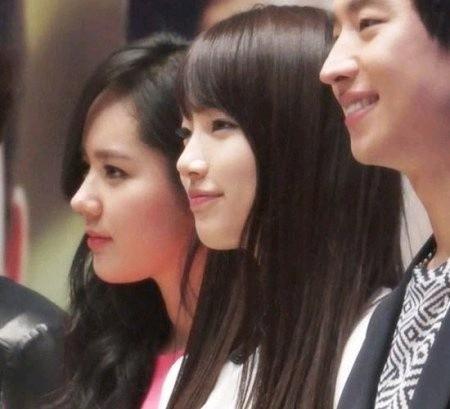 공개된 사진은 과거 영화 '건축학개론' 제작발표회 당시의 모습으로, 자연스러운 웨이브 머리로 여성스러움을 뽐낸 한가인과 연예계에서 '명품 콧대'로 유명한 한가인 못지않게 오똑한 콧날을 자랑하는 수지의 모습이 눈에 띈다.