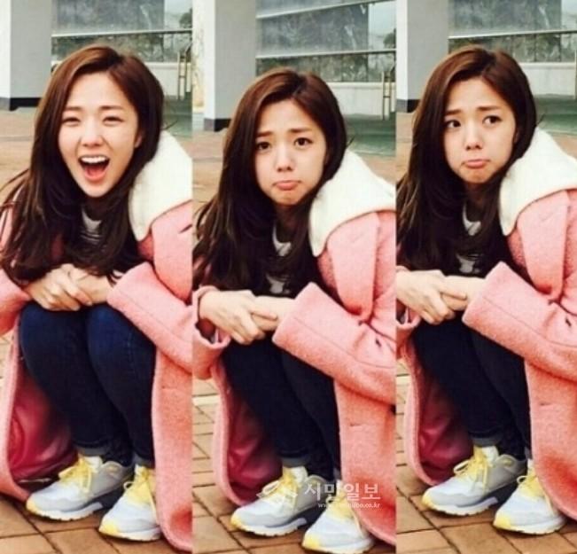 사진 속 채수빈은 데임팬츠에 운동화를 신고 핑크컬러의 코트를 걸친채 활짝웃는 모습, 삐친 모습, 뾰루퉁한 모습의 3단 변화를 보여 주고 있다.