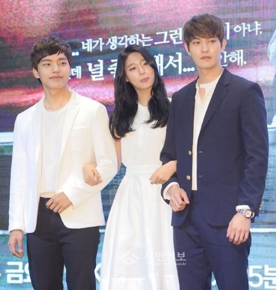배우 여진구, 걸그룹 에이오에이 설현, 그룹 씨엔블루 이종현이 지난 5월 12일 오후 서울 영등포구 여의도동 글래드호텔에서 열린 KBS 2TV 새 금요미니시리즈 ‘오렌지 마말레이드(극본 문소산, 연출 이형민,최성범)' 제작발표회에 참석해 포즈를 취하고 있던 것.