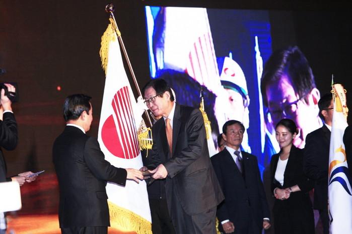 | ▲ 지난 27일 고양시 킨텍스에서 열린 2015 대한민국 안전문화대상 시상식에서 한전 조환익 사장이 대통령상을 수상했다. | ||