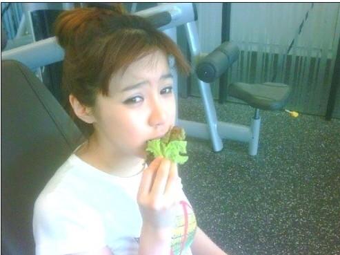 사진 속 박봄은 조금 후덕진 몸매를 만회하려는 피나는 노력을 대변하듯 상추를 먹고 있다.