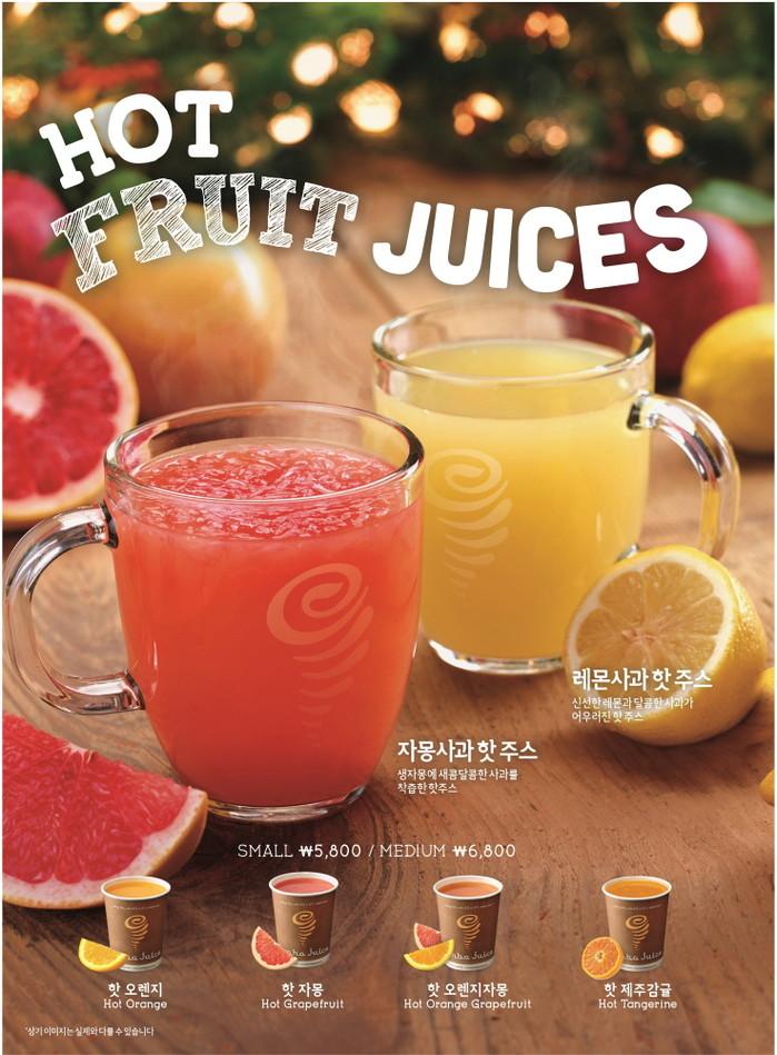 이외에도 잠바주스는 오렌지, 자몽, 오렌지 자몽, 제주 감귤 등 총 6종의 핫 주스를 판매한다.