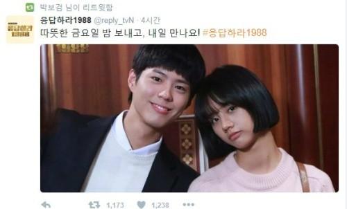 한편 박보검이 천재 바둑기사 '택'으로 출연하는 '응팔'은 쌍팔년도 쌍문동, 한 골목 다섯 가족의 왁자지껄 코믹 가족극. 매주 금, 토요일 오후 케이블채널 tvN에서 7시 50분 방송된다.