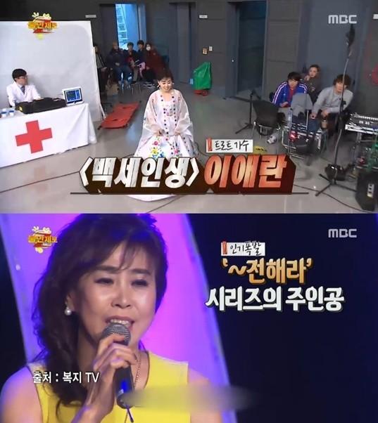 이애란은 앞서 5일 방송된 MBC 예능프로그램 '무한도전'에 한복을 입고 출연, 자신의 곡 '백세인생'을 열창했다.