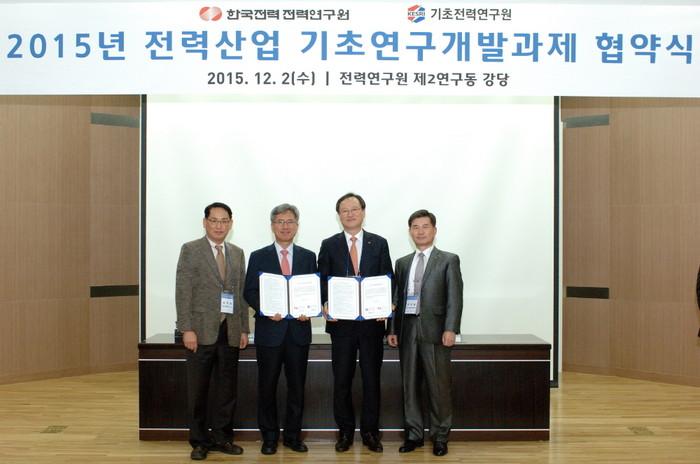 | ▲ (사진 왼쪽부터) 홍익대 김정훈 교수, 문승일 기초전력연구원장, 최인규 한전 전력연구원장, 박성철 한전 신성장동력본부장 | ||