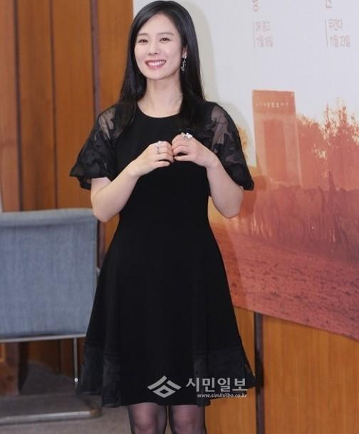 이 날 김현주는 블랙컬러의 여성스러운 스타일의 원피스를 입고 환하게 웃고 있다.