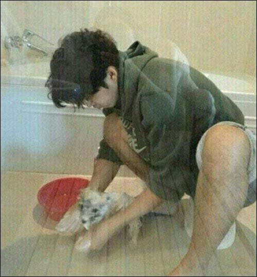 과거 한 온라인 커뮤니티에는 '강아지 씻기는 윤계상을 찍은 이하늬'라는 제목과 함께 사진 한 장이 게재됐다.