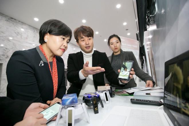 | ▲ KT GiGA IoT 사업단장 송희경 전무(왼쪽에서 첫번째)가 ‘KT와 함께하는 IoT 쇼케이스에 선발된 중소기업의 IoT 관련 서비스를 체험하고 있다. | ||