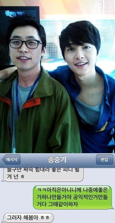 이후 권해봄 PD는 "이천십삽년 일월 삼십일. 송중기 나랑 프로그램 같이 하기로 약속. 여기 기록했다. 꼭 지켜라. 어으 취한다"라는 글과 함께 송중기와 주고받은 문자 메시지 내용을 공개하기도 했다.