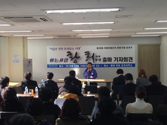저는 이번 20대 국회의원 선거에서 양천갑 새정치민주연합 예비후보로 입후보한 황희입니다.