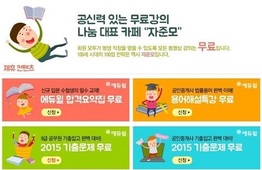 한편, 네이버 카페 자격증을 준비하는 모임 ‘자준모(http://cafe.naver.com/samoim3)’는 다양한 무료인강과 시험에 필요한 정보들을 다채롭게 제공하고 있어 공인중개사나 주택관리사와 같은 전문 자격증 취득이나 공무원 시험을 준비하는 수험생들 사이에서 큰 호응을 얻고 있다.