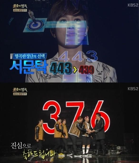 특유의 파워풀한 목소리로 폭발하는 가창력을 보여주며 카리스마 넘치는 모습으로 무대를 휘어잡았다. 서문탁의 무대를 지켜본 MC들과 출연진은 무대가 끝나자 기립박수를 치며 서로의 손을 잡고 열광했다.