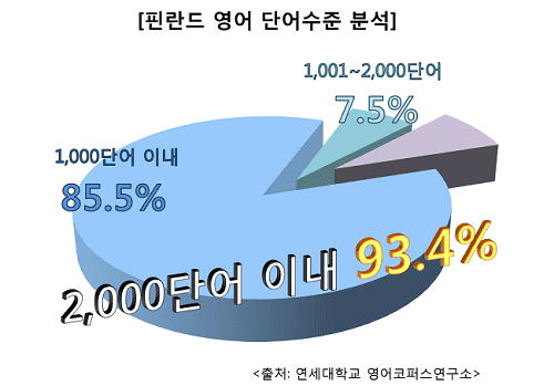 연세대 “영어코퍼스 연구소”의 조사 결과에 따르면 영어 교육 최강국가인 핀란드의 경우 일상적인 대화의 93.4%가 2000개 미만의 간단한 단어의 조합으로 이루어져 있다고 한다.