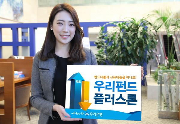5일 우리은행에 따르면 '우리펀드 플러스론'은 기존 금융권의 펀드담보대출은 일반적으로 주식형펀드의 경우 대출한도가 50% 수준인데 반해 개인 신용등급에 따라 신용대출한도를 추가 부여해 대출한도를 정기예금담보대출 수준인 95%까지 확대한 것이 특징이다.