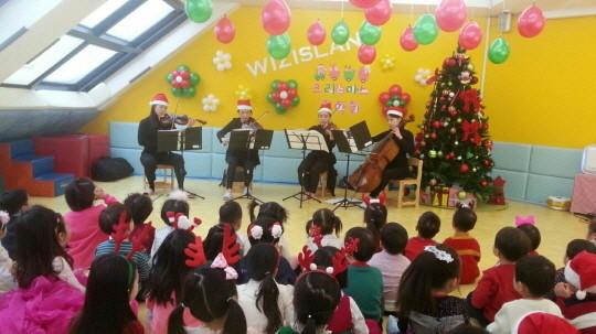 학부모들은 ‘위생적이고 안전한 환경은 물론, 아이들에 대한 아낌없는 교육투자가 이곳의 장점’이라고 말한다. 지난 크리스마스에는 첼로와 비올라, 바이올린으로 구성된 현악 4중주단의 성탄절 공연도 열어 아이들 수업에 활용했다. 연주에 맞춰 노래도 불러오고 악기에 대해서도 배워보는 시간을 가지며 아이들의 호기심을 충족시켰다. 잠실 위즈아일랜드 차수연원장은 “첼로는 아빠소리, 비올라는 오빠소리, 바이올린은 엄마와 언니소리에 비유하는 등 아이들의 눈높이에 맞는 음악수업을 진행했다”고 설명했다.
