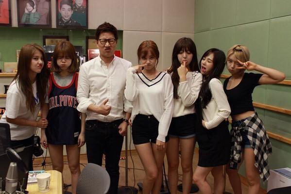사진 속 조우종은 얼굴을 한껏 찡그리며 포즈를 취하고 있다. AOA 멤버들도 같이 장난스런 표정을 짓고 있다.