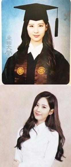 사진 속 서현은 학사모를 쓰고 카메라를 응시하고 있다. 학사모에도 전혀 굴욕없이 지성미를 한껏 뽐냈다.