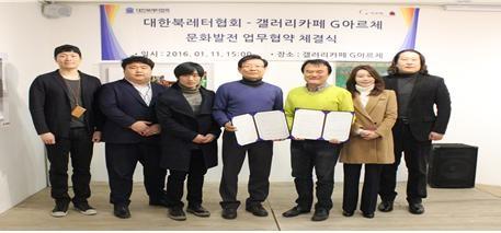 이날 협약식에는 G아르체 대표 이종원과 수필가 황태영(북협 회장)을 포함하여 G아르체 매니저 이승환, 문화운동가 황희두(북협 상임부회장), 서양화가 송미영(북협 부회장), 캘리그래퍼 진성영(북협 부회장), (주)넛지스토리 대표 국도형(북협 사무총장) 등이 참석했다.