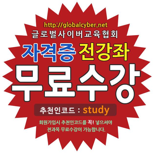 글로벌사이버교육협회의 홈페이지 (www.globalcyber.net) 에 회원 가입 시 추천인(쿠폰코드) 란에 ‘study’를 입력하면 총 22개의 민간자격증과정에 대한 무료수강이 가능하다.