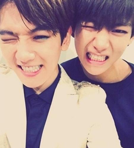 공개된 사진 속 뷔와 백현은 윙크를 하며 장난기 넘치는 표정으로 카메라를 응시하고 있다. 두 사람은 갸름한 얼굴형과 이목구비 등 전체적으로 비슷한 모습을 하고 있어 보는 이들의 시선을 사로잡았다.