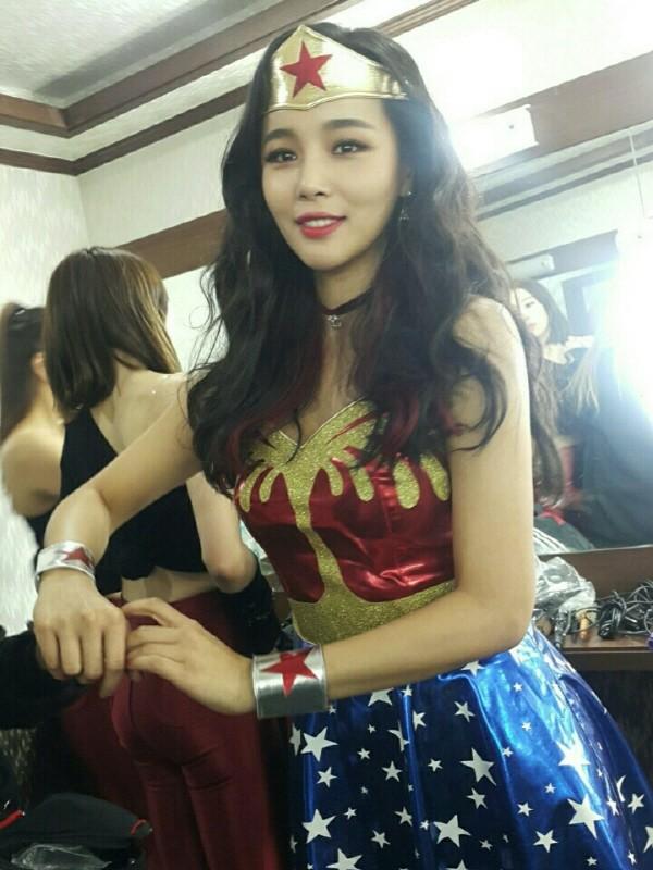 18일 온라인 커뮤니티를 통해 공개된 사진에서 조정민은 원더우먼 코스튬을 착용하고 촬영을 대기 중이다. 원더우먼의 트레이드 마크인 별무늬가 들어간 파란책 치마와 원더우먼 상의, 팔찌, 왕관이 눈길을 끈다.