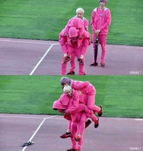 평소 장난 많이 치기로 유명한 틴탑은 팬서비스로 4단 어부바를 선보였다. 먼저 창조가 리키를 어부바하고 뒤이어 천지, 니엘이 그 위에 올라타 4단 어부바를 성공시킨 것.