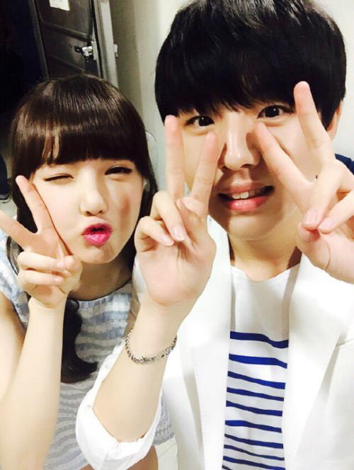 공개된 사진 속 예린은 유승우와 함께 브이포즈를 취하며 입술을 내밀었다.