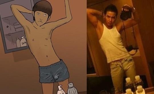 장근석과 우기명은 오른쪽 팔을 머리에 올린 포즈와 상반신 노출과 표정이 매우 흡사해 보는 이들의 놀라움을 자아내고 있다. 장근석의 사진은 한때 인터넷을 뜨겁게 달궜다.