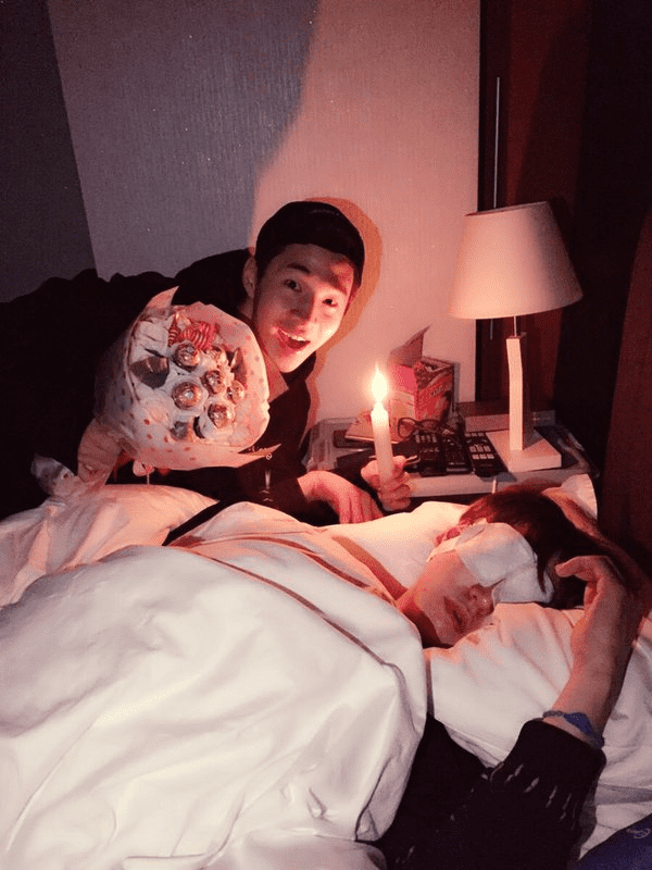 사진에는 규현이 잠을 자고 있는 모습과 함께 헨리가 규현의 침실로 들어와 있는 장면이 담겨있어 눈길을 끌고 있다. 헨리는 해맑은 표정으로 초와 꽃다발을 들고 이날 생일을 맞은 규현을 축하했다.