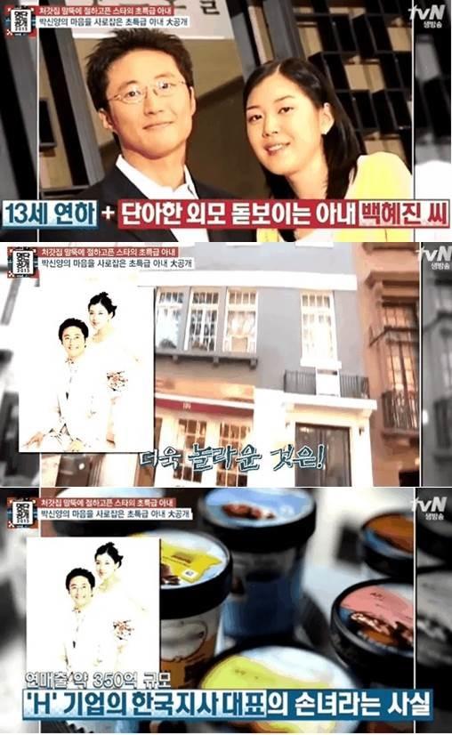 과거 tvn 프로그램 '명단공개 2015'는 박신양과 그의 아내 백혜진씨를 소개하는 방송을 공개했다.