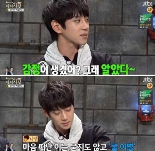 황치열은 당시 방송에서 '여자친구가 대놓고 양다리를 걸치고 있어 고민이다'라는 사연이 소개됐고, 이런 경우에 어떻게 하겠냐는 MC의 질문에 "저는 절규하지 않는다,'감정이 생겼어?그래 알았다'라고 말하겠다"며 쿨하게 전화를 끊는 동작을 나타냈다.