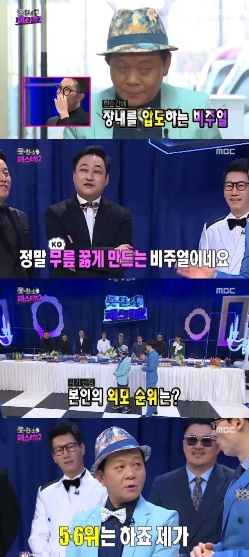 특히 우현은 이 중에서 순위를 매기라고 하자 "내가 중간은 간다. 5, 6위 정도는 된다"고 했고, 이후 그는 10위를 묻는 질문에 "박명수"라고 해 눈길을 끌었다.