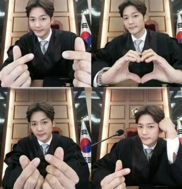 특히 판사복을 입었음에도 손가락으로 미니 하트를 그리고 있어 시선을 모은다.