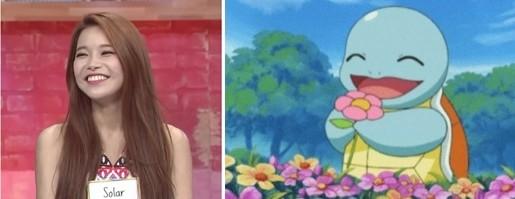 과거 한 온라인커뮤니티는 솔라와 애니메이션 '포켓몬스터'에 등장하는 캐릭터 '꼬부기'를 비교한 사진을 게재했다.