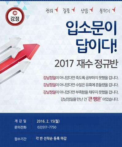 강남정일학원 재수정규반 관련 문의는 전화 02-517-7750, 또는 홈페이지(http://www.gangnamjungil.co.kr)를 통해 가능하다.