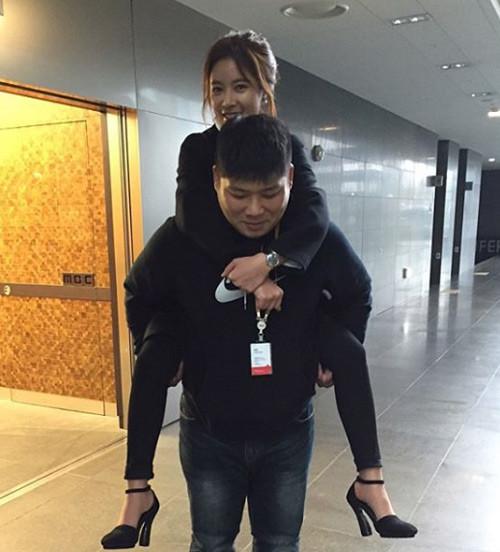 황정음은 과거 자신의 인스타그램에 "힘들다고 했더니 업어주는 내 매니저 고마워"라는 글과 함께 사진을 한 장 게재했다.